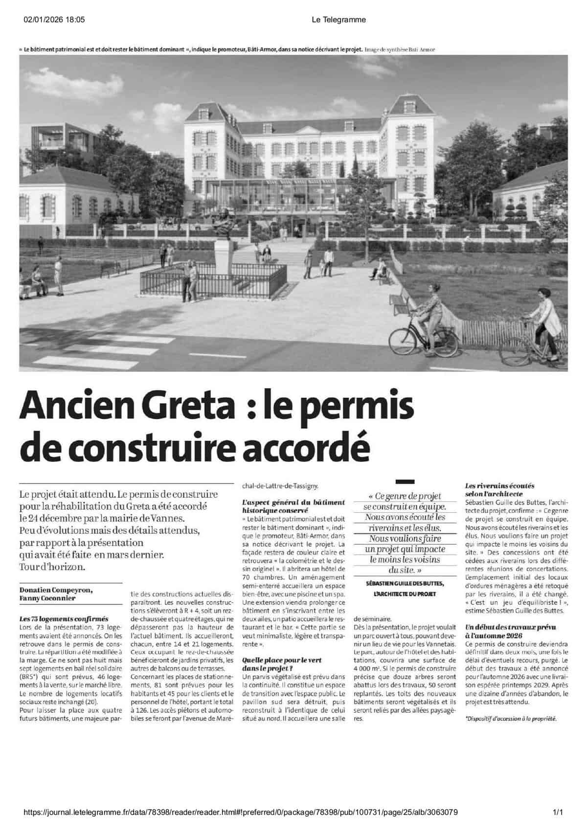 ANCIEN GRETA : LE PERMIS DE CONSTRUIRE ACCORDE LE TELEGRAMME DU 27 DECEMBRE 2025