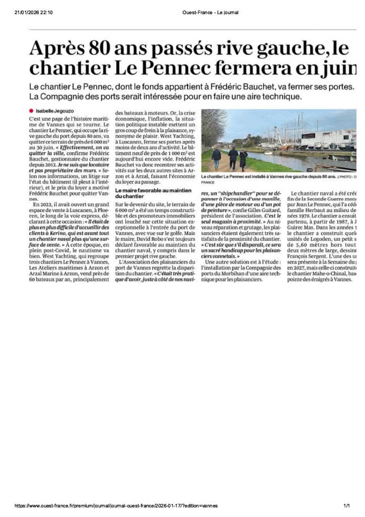 APRES 80 ANS PASSES RIVE GAUCHE, LE CHANTIER LE PENNEC FERMERA EN JUIN OUEST FRANCE 17 JANVIER 2026