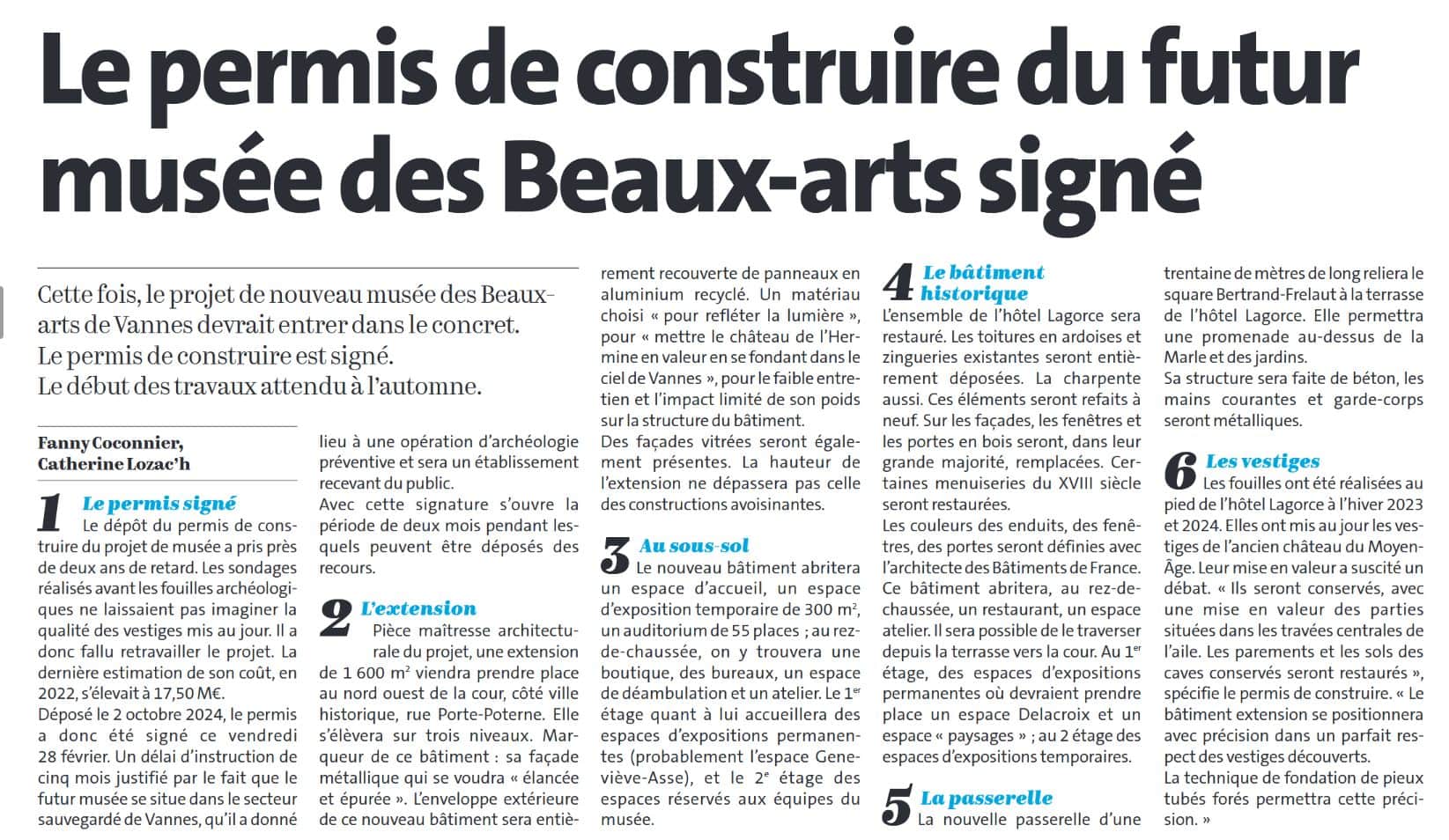 LE PERMIS DE CONSTRUIRE DU FUTUR MUSEE DES BEAUX-ARTS SIGNE LE TELEGRAMME 06 MARS 2025