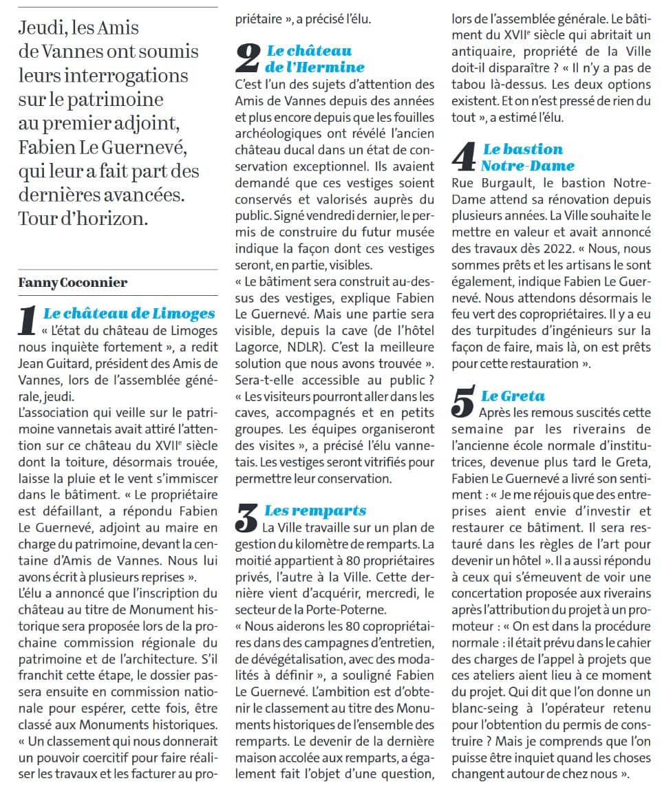 LES AMIS DE VANNES VEILLENT SUR LEUR DEVENIR LE TELEGRAMME SAMEDI 08 MARS 2025