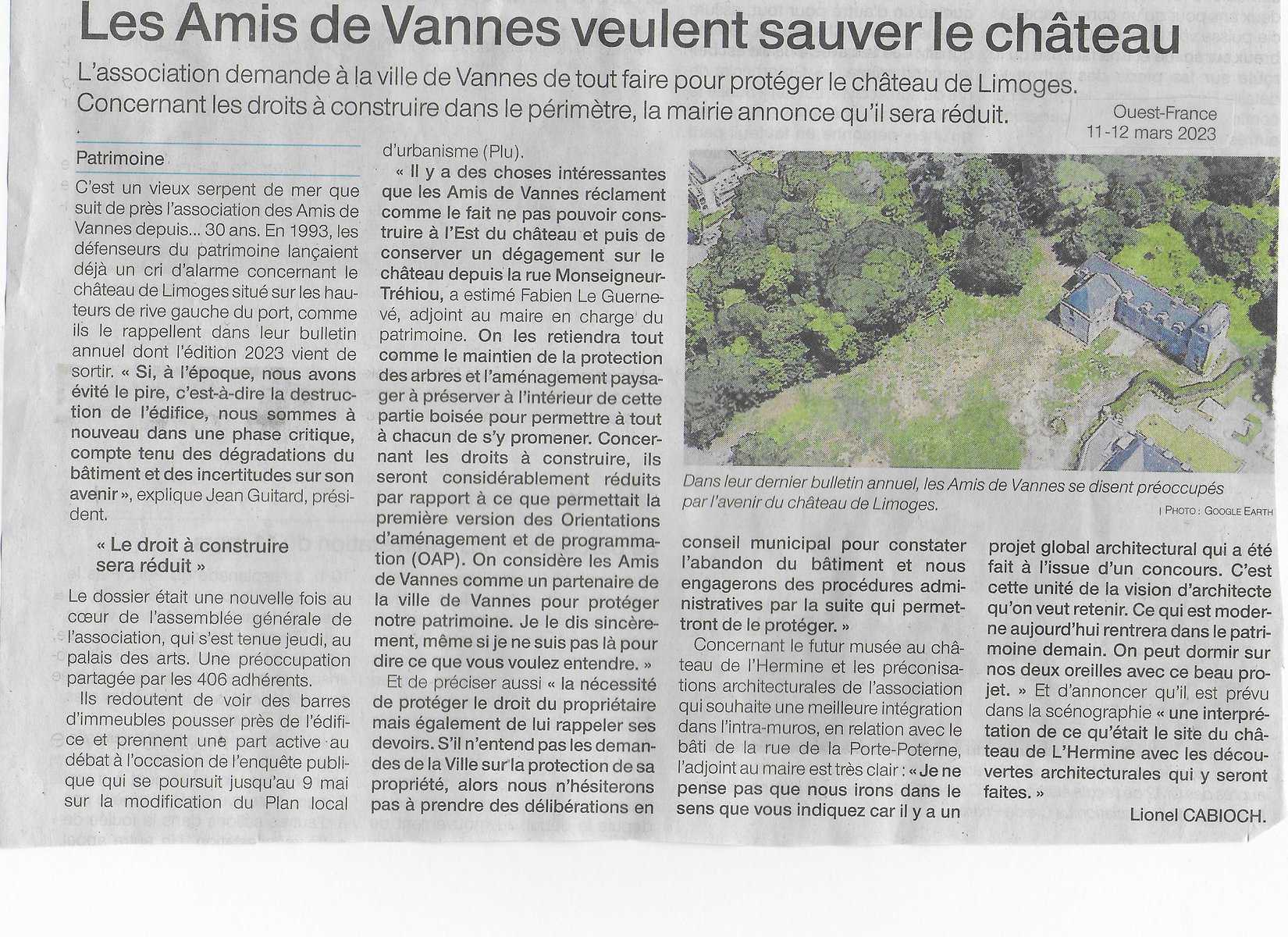 LES AMIS DE VANNES VEULENT SAUVER LE CHATEAU DE LIMOGES SAMEDI 11 MARS 2023