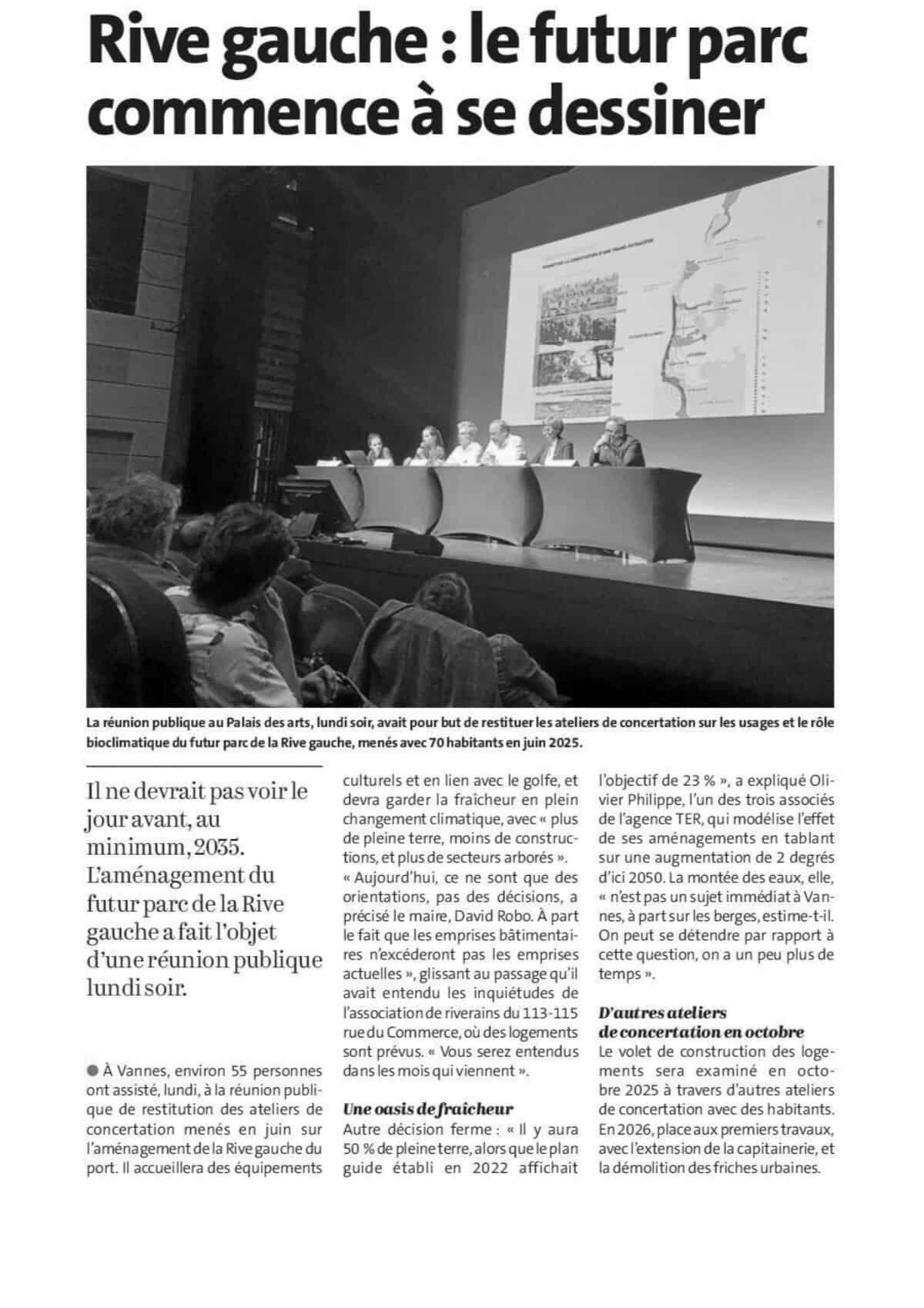 RIVE GAUCHE : LE FUTUR PARC COMMENCE A SE DESSINER LE TELEGRAMME DU MARDI 8 JUILLET 25