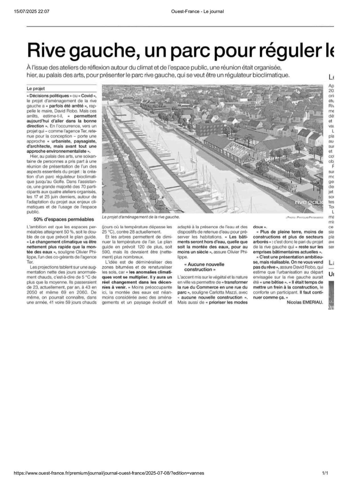 RIVE GAUCHE, UN PARC POUR REGULER LE RECHAUFFEMENT OUEST FRANCE MARDI 08 JUILLET 25